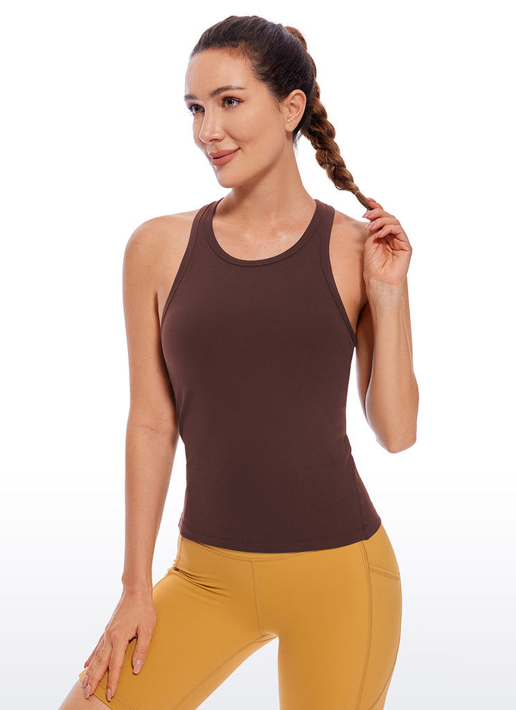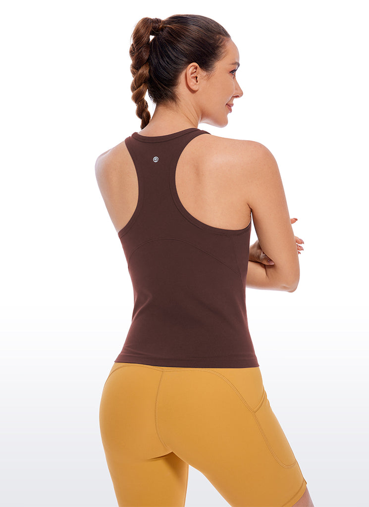 CRZ YOGA Women's Yoga Low Impact Butterluxe Longline Bra Square Neck Hot Fudge Brown