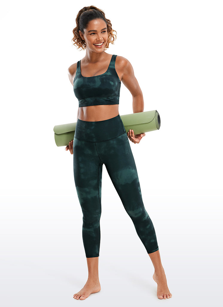 CRZ YOGA Women's Yoga Low Impact Butterluxe Longline Bra Square Neck Green Palm Court