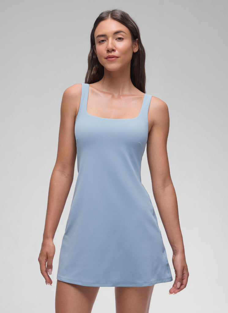 CRZ YOGA Women's Yoga Low Impact Butterluxe Longline Bra Square Neck Kayak Blue