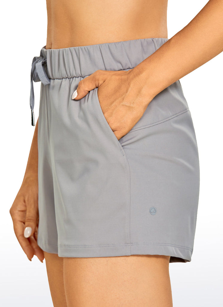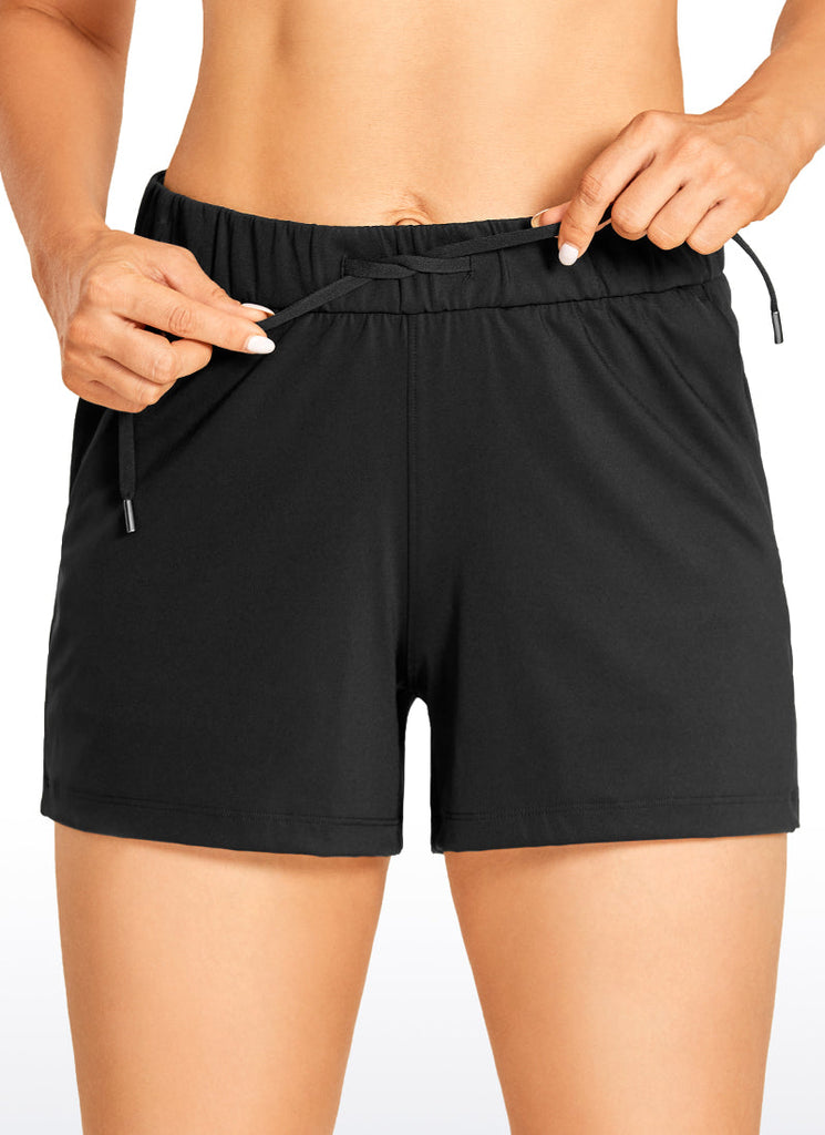 Stretch Mid-Rise Drawstring Shorts with Pockets 3.5"