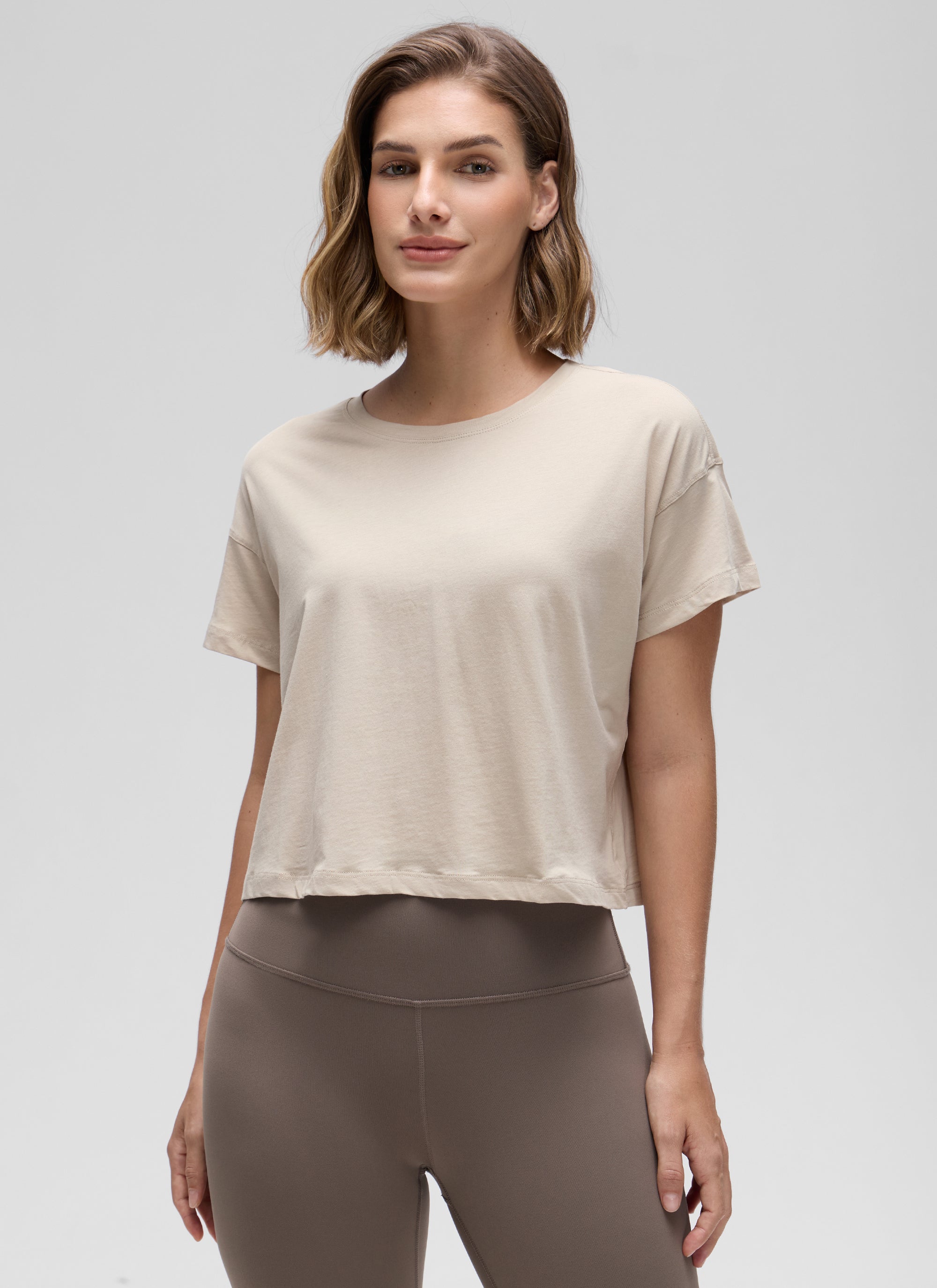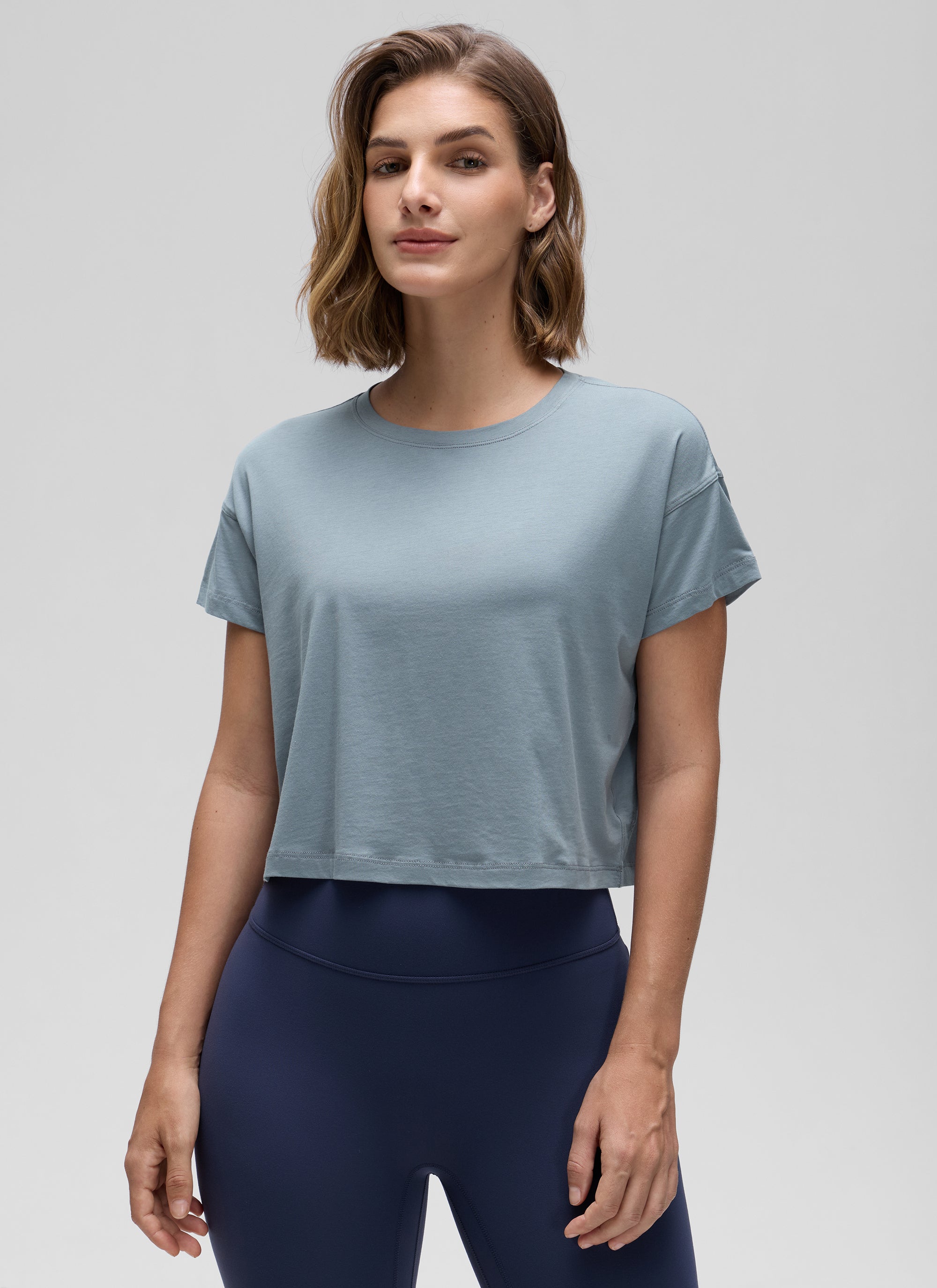 Pima Cotton Crew Neck Cropped Short Sleeve