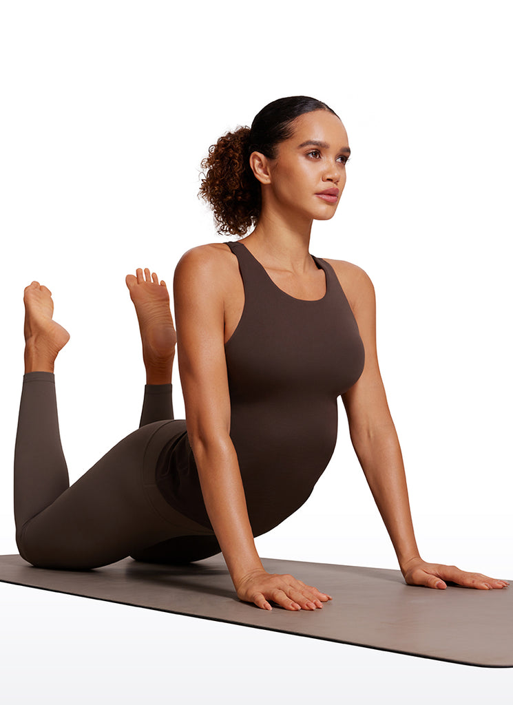 CRZ YOGA Women's Yoga Low Impact Butterluxe Longline Bra Square Neck Hot Fudge Brown