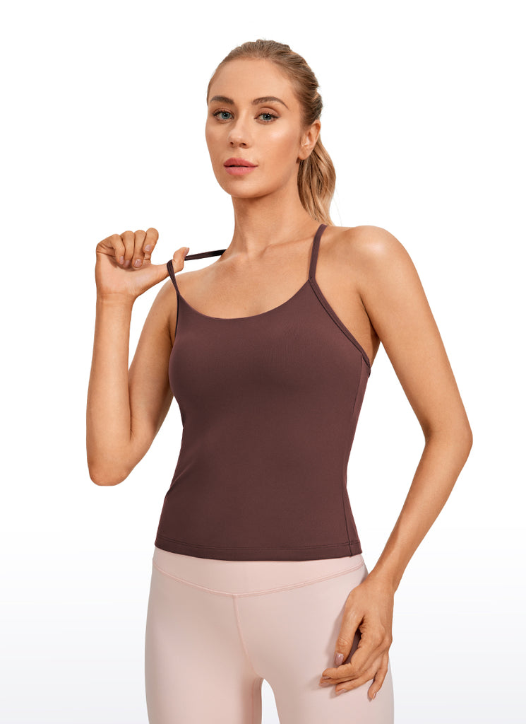 CRZ YOGA Women's Yoga Low Impact Butterluxe Longline Bra Square Neck Hot Fudge Brown