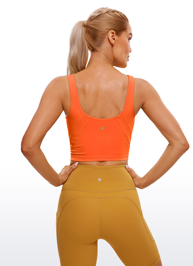 CRZ YOGA Women's Yoga Low Impact Butterluxe Longline Bra Square Neck Hot Fudge Brown