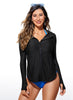 I'm 5'3", 120lb, curvy athletic, 37/24/38. I ordered a small in the red color. I like the design a lot, it's very flattering and light weight. The arms are tight but the body and chest fits well. The model in the photos has thin arms so the sleeves fit looser on her but otherwise the fit is the same as the model. After reading about UPF clothing, I recommend sizing up because stretching the fabric reduces the effect of the sun protection. Overall I'm really pleased. The red color looks like the photos. It covers the check and neck well and the side slits are great for shorter girls. Not quite long enough to cover my tooshie though!