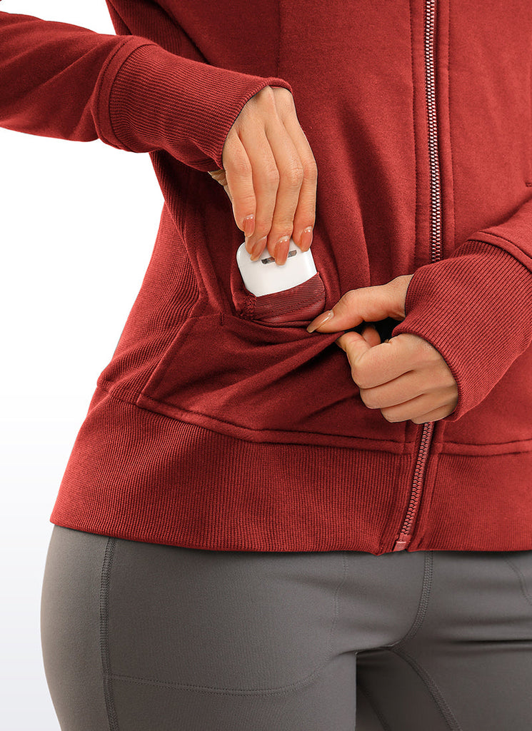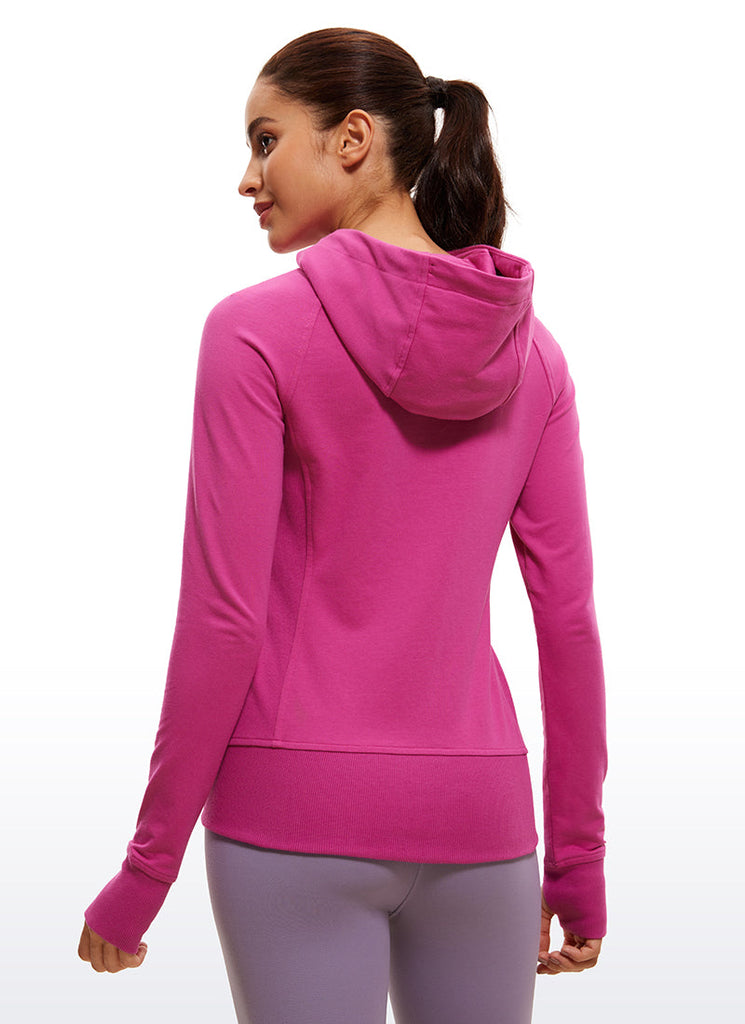 Cotton Terry Full Zip Hoodies Thumb Holes