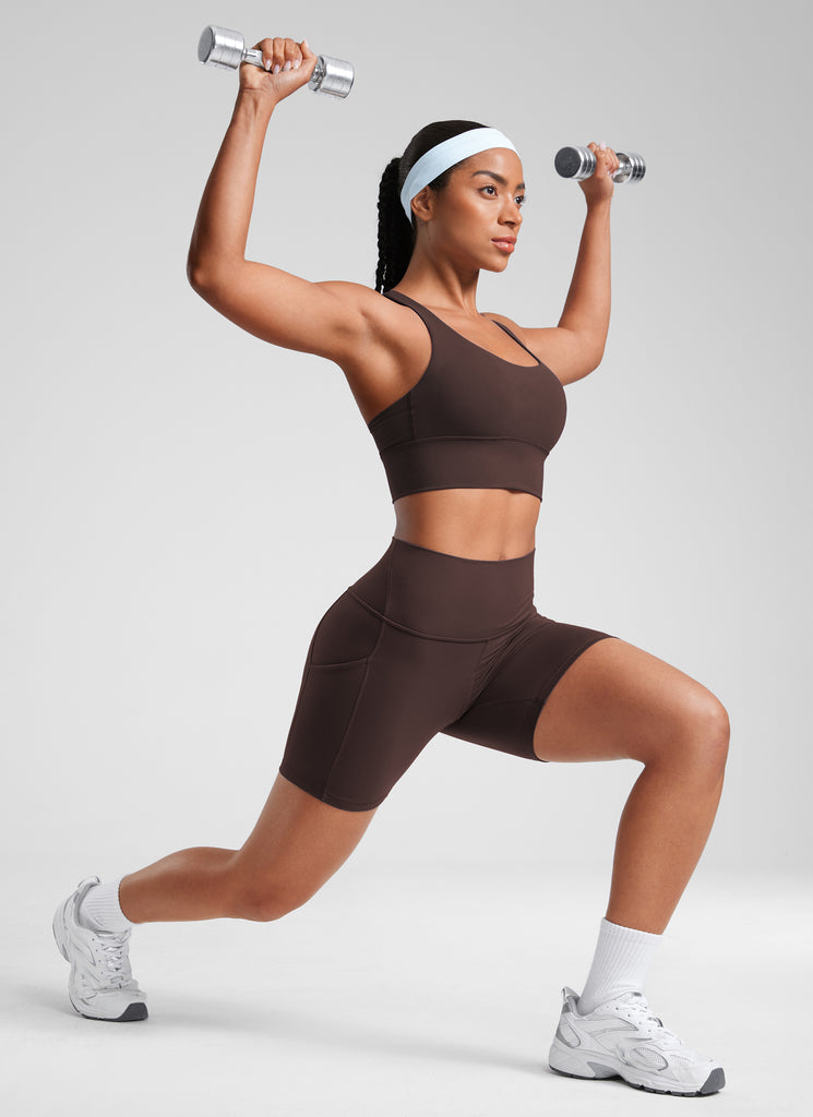CRZ YOGA Women's Yoga Low Impact Butterluxe Longline Bra Square Neck Hot Fudge Brown