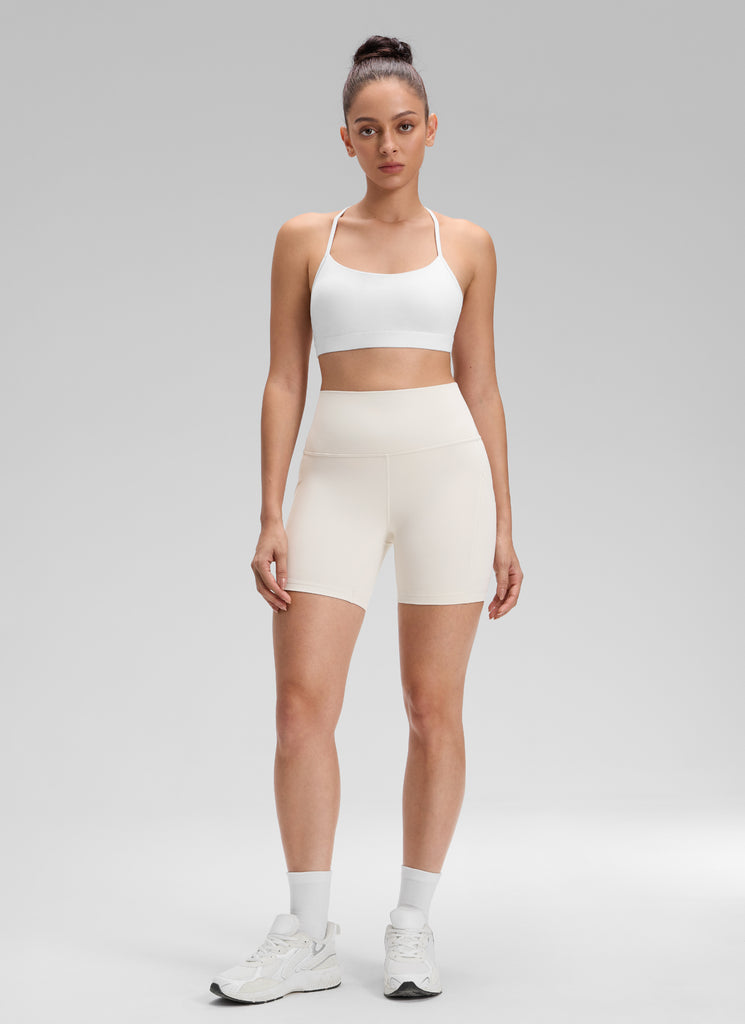 CRZ YOGA Women's Yoga Low Impact Butterluxe Longline Bra Square Neck Oasis Blue