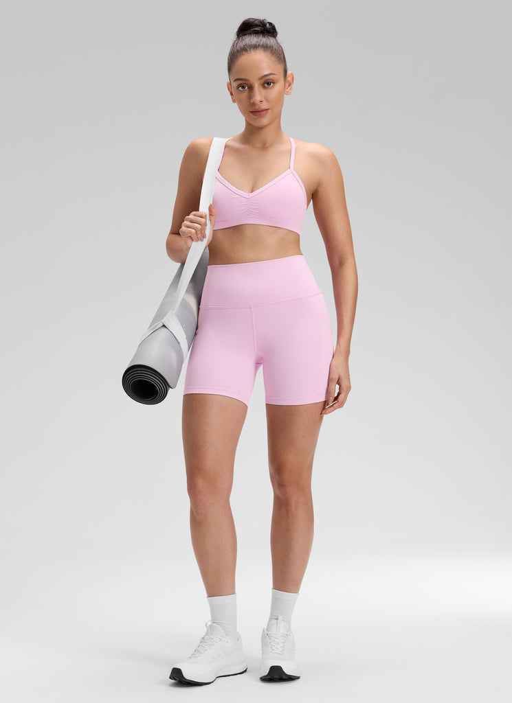 CRZ YOGA Women's Yoga Low Impact Butterluxe Longline Bra Square Neck Red Merlot