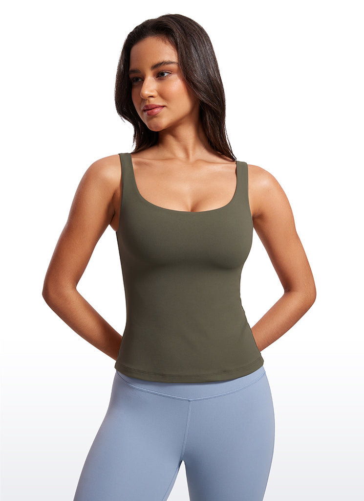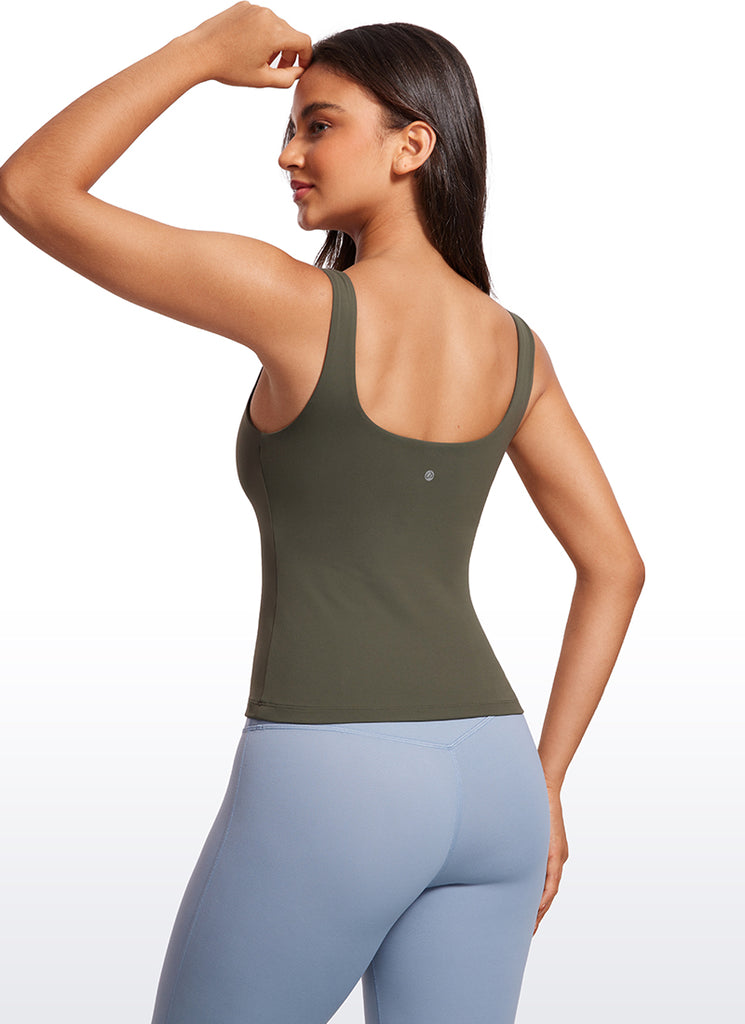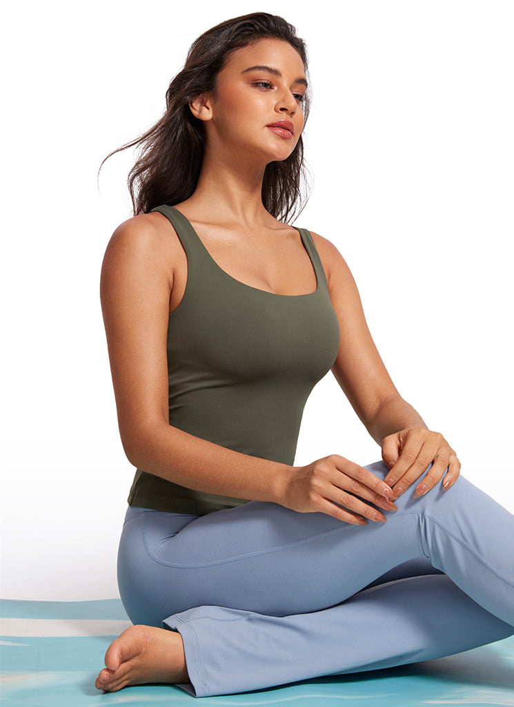 CRZ YOGA Women's Yoga Low Impact Butterluxe Longline Bra Square Neck Legend Green