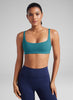 CRZ YOGA Women's Yoga Low Impact Butterluxe Longline Bra Square Neck Kayak Blue