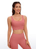 CRZ YOGA Women's Yoga Low Impact Butterluxe Longline Bra Square Neck Red Merlot