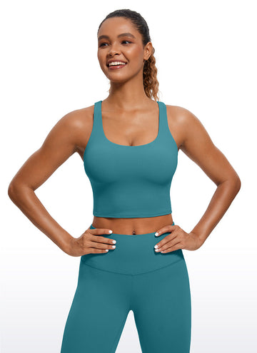 CRZ YOGA Women's Yoga Low Impact Butterluxe Longline Bra Square Neck Oasis Blue