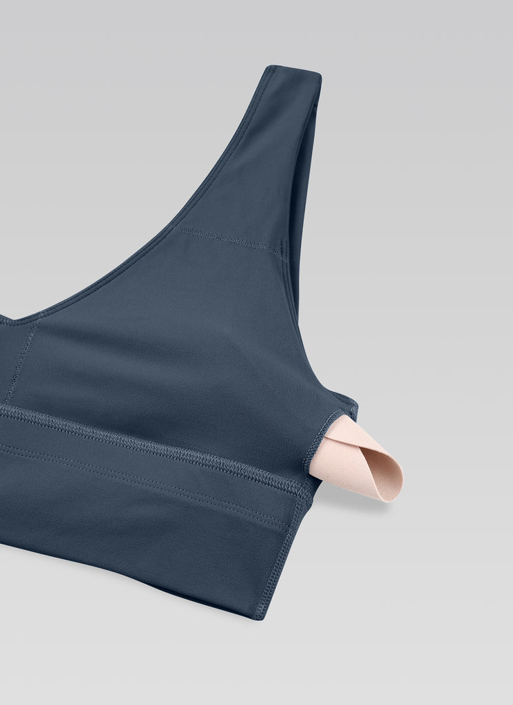 CRZ YOGA Women's Yoga Low Impact Butterluxe Longline Bra Square Neck Kayak Blue