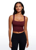 CRZ YOGA Women's Yoga Low Impact Butterluxe Longline Bra Square Neck Red Merlot
