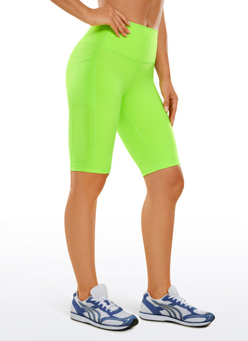 The most comfortable yoga shorts I own. Fabric is not thick. I appreciate the light weight. You cannot see thru them. The side pockets are handy, just a little skinny for my phone case so I have to shimmy my iPhone 12 Pro in, but the pockets are so deep so it held it well. Super high waist which I love. Some tummy control but I always want more😊 Great price I bought two pair.