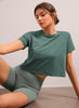 Pima Cotton Crew Neck Cropped Short Sleeve