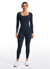 CRZ YOGA Women's Yoga Low Impact Butterluxe Longline Bra Square Neck Oasis Blue