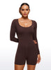 CRZ YOGA Women's Yoga Low Impact Butterluxe Longline Bra Square Neck Hot Fudge Brown