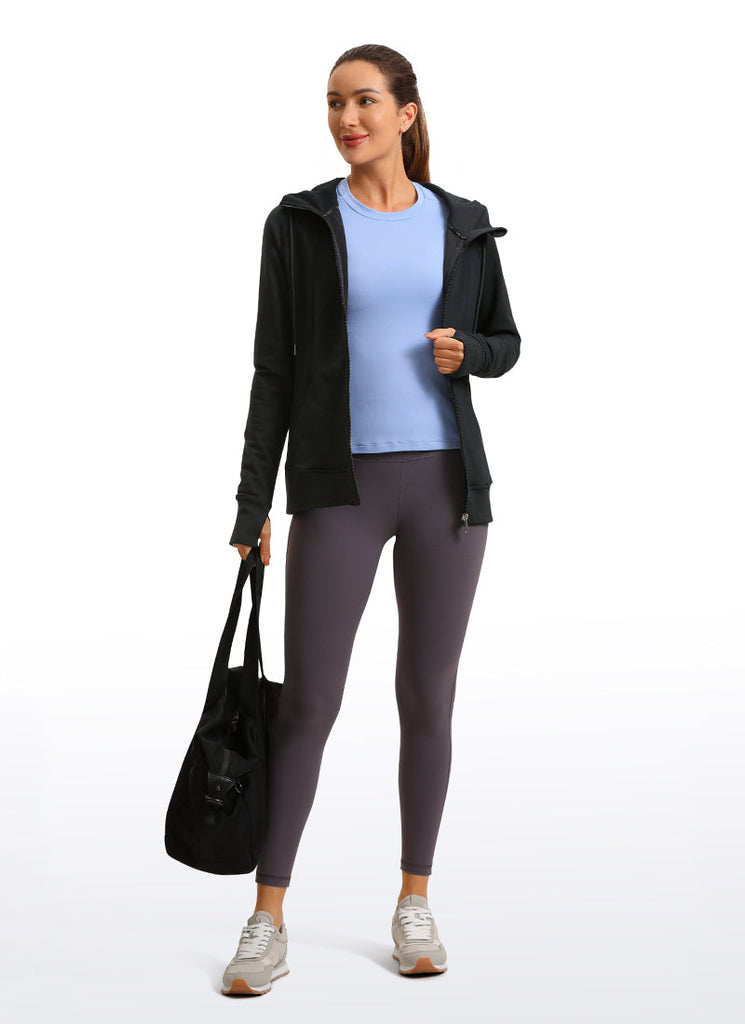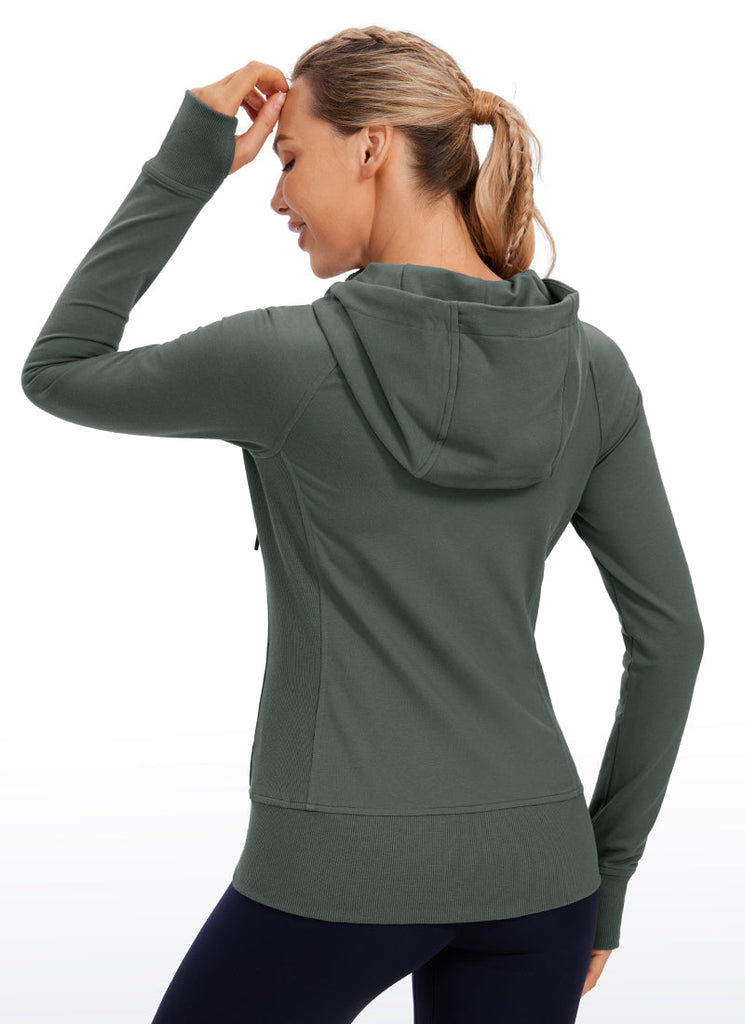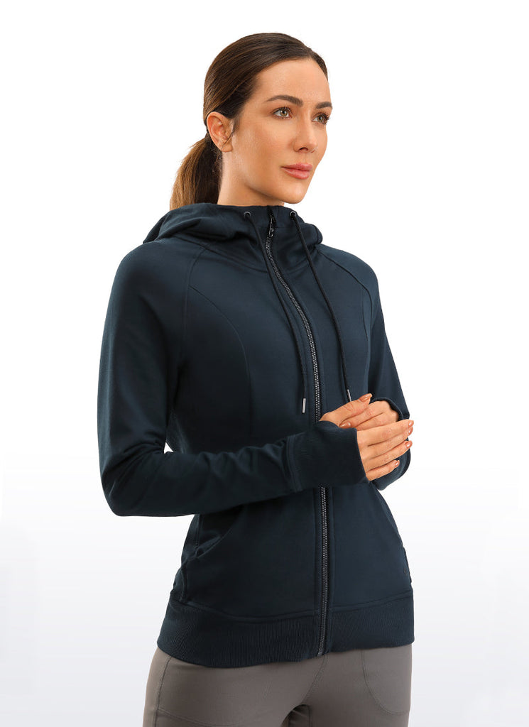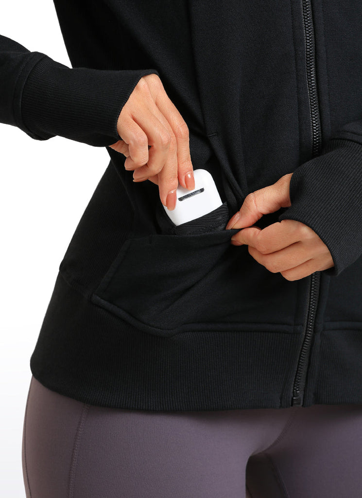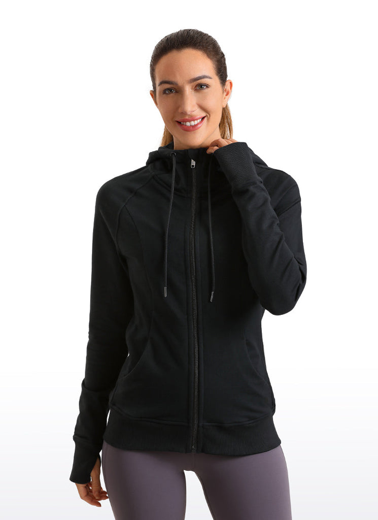 Cotton Terry Full Zip Hoodies Thumb Holes