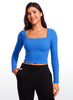 CRZ YOGA Women's Yoga Low Impact Butterluxe Longline Bra Square Neck Oasis Blue